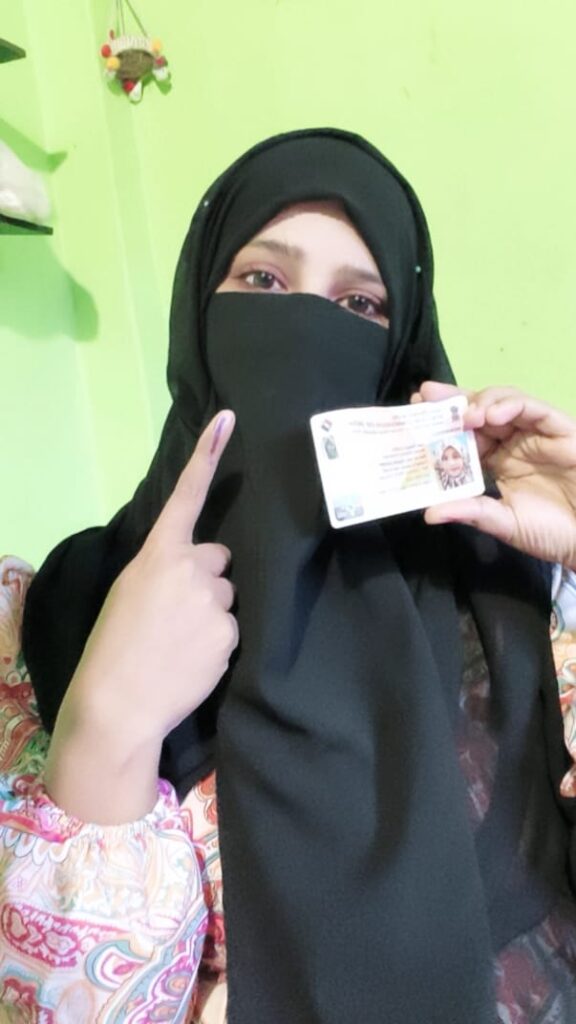 Nikaht Perween, a government job aspirant looking forward to working in the Bihar Rural Livelihoods Promotion Society (BRLPS, also known as Jeevika) under the Department of Rural Development. Nikhat is a two time voter and a person living with Polio. “The polling booths were not on the ground floor. There were stairs that required persons with disabilities to be picked up in order to reach. The booth itself felt narrow for me to use my crutches but the booths for wheelchair users seemed quite broad’ elaborating that despite being a person with disability, she was made to use the long cues that do not cater to her needs.